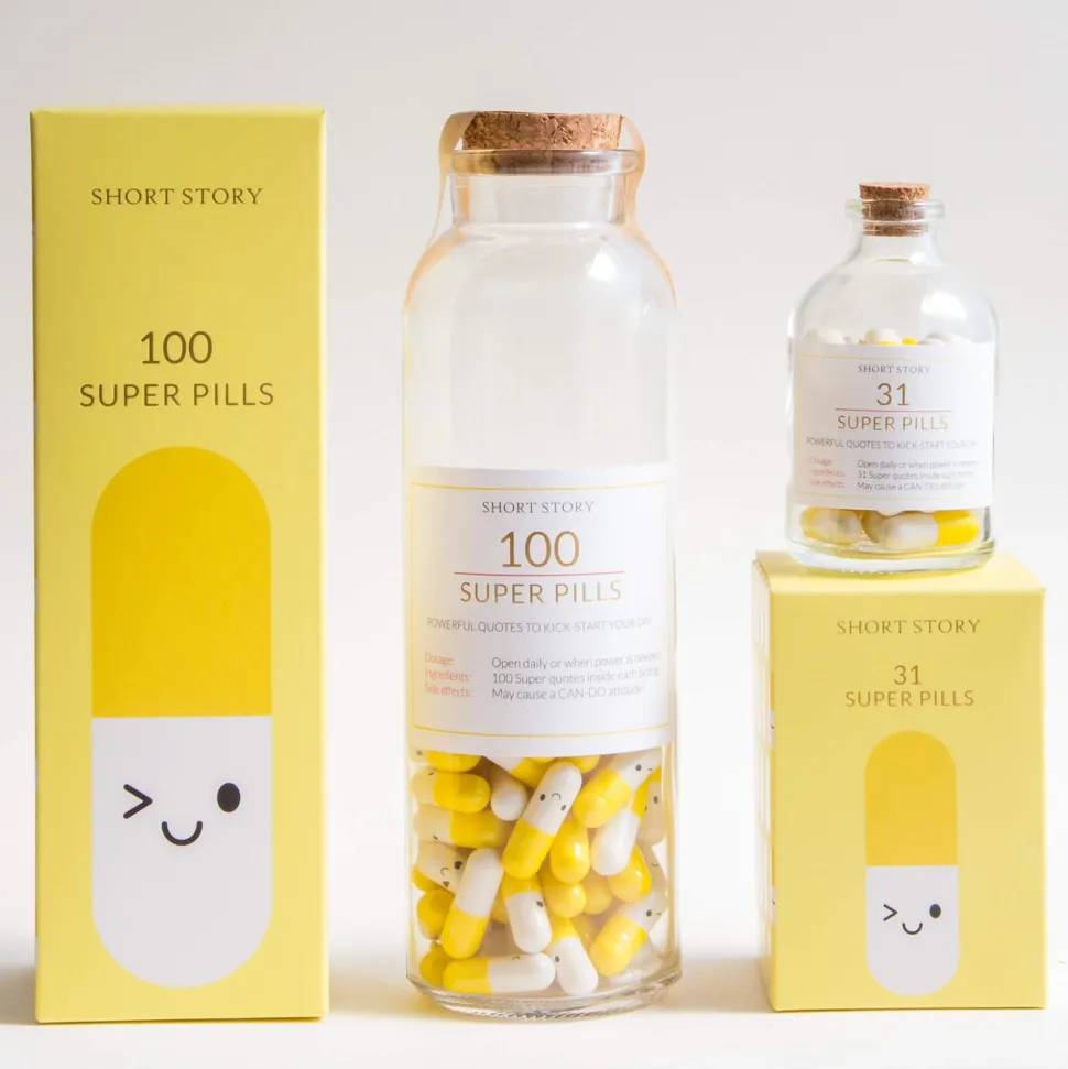 These adorable bottles hold superhero pills in a way you have never seen them before! Each one of these little capsules hold a cute miniature scroll in a gold ring with a powerful quote to help kickstart your day! Inside you will find a range of powerful, impactful and motivational quotes to add zest and fortitude to all who read it.