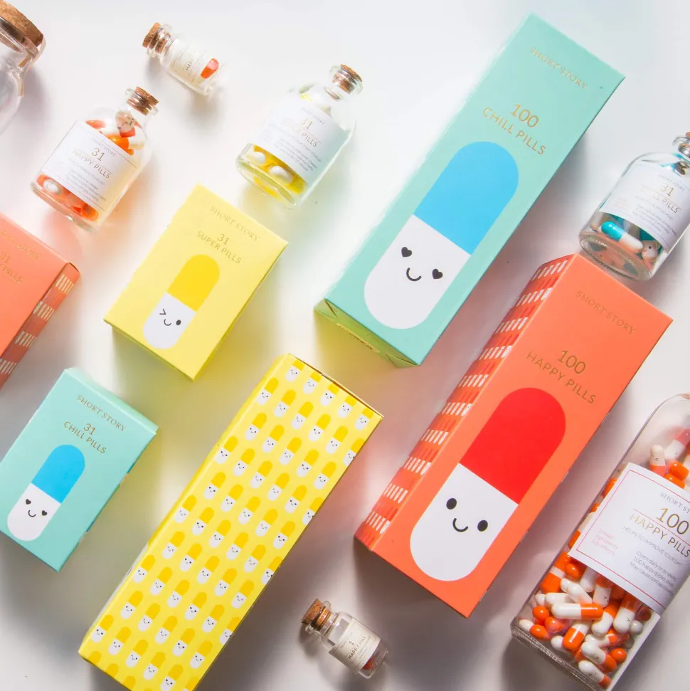 These adorable 1 Day Happy Pill bottles hold little capsules with an inspirational quote to help brighten your day! Inside you will find a range of inspirational, happy and insightful quotes to add a bit of wisdom and much needed happiness.