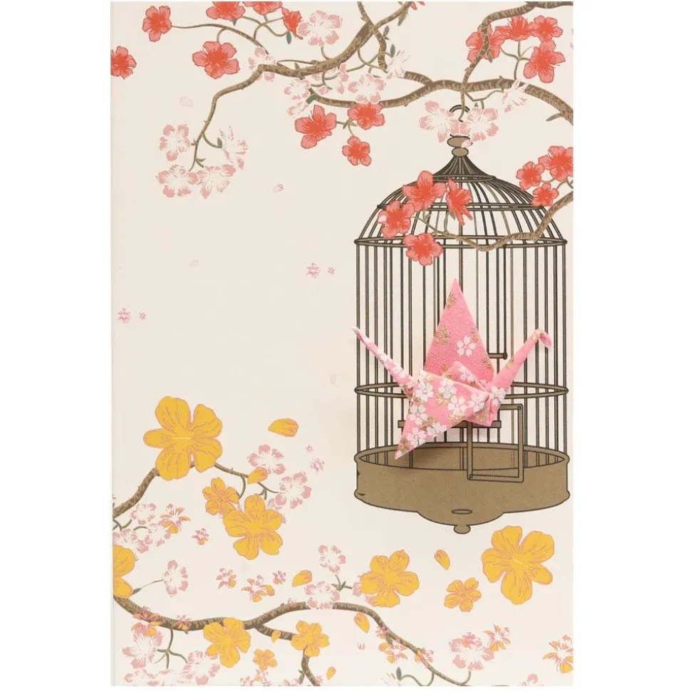 Card Crane in Cage Little Flowers Pink