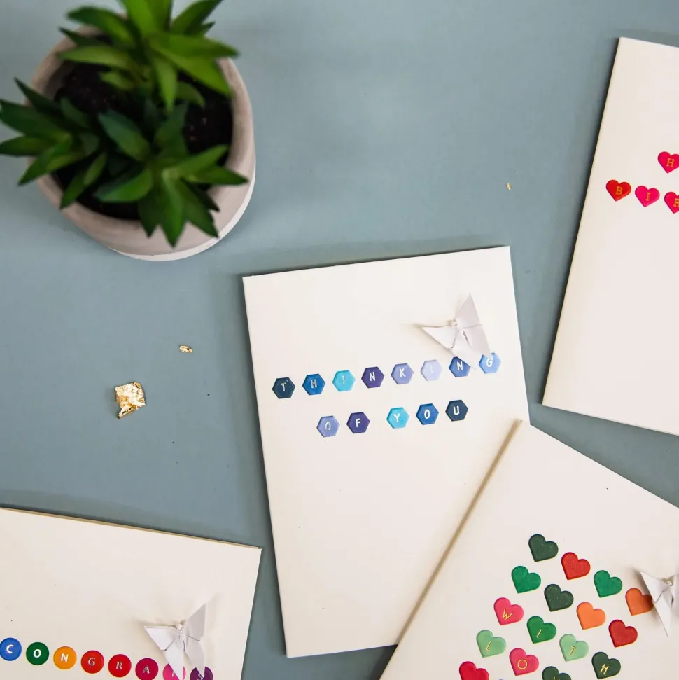 As each card is individually hand-crafted in our Melbourne studio there may be slight variations in each piece due to the hand-making process. Origami papers may vary in colour and print dependent on availability.