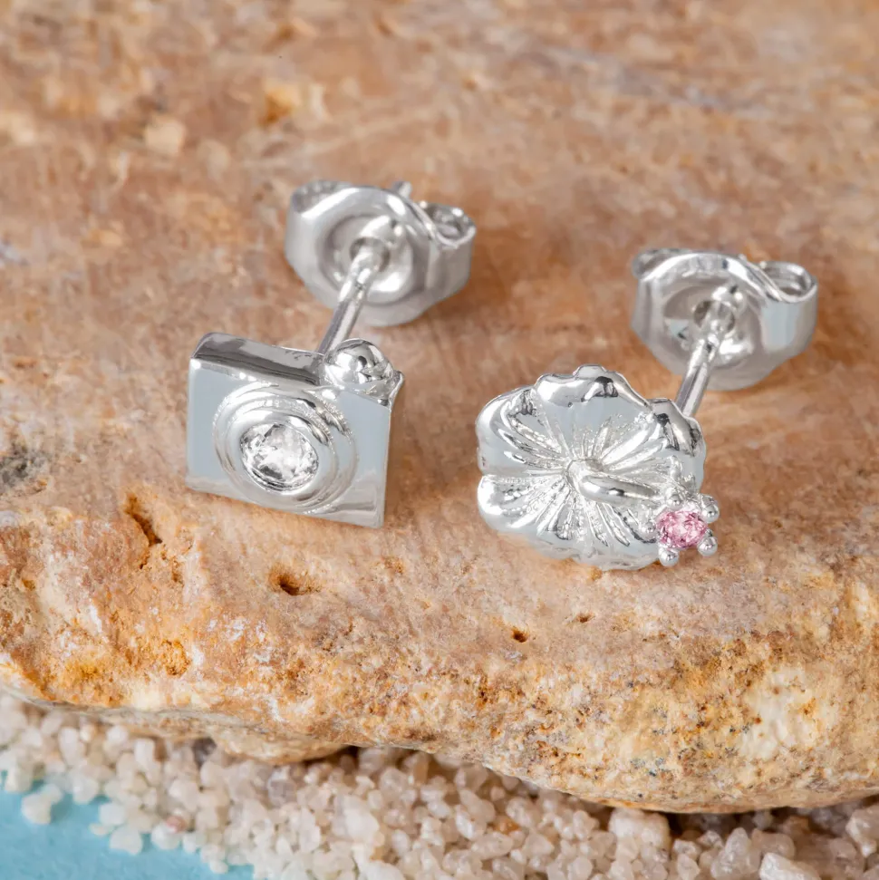 Add the creative spirit of Lilo to your outfit with this pair of Diamante Hibiscus & Camera earrings.