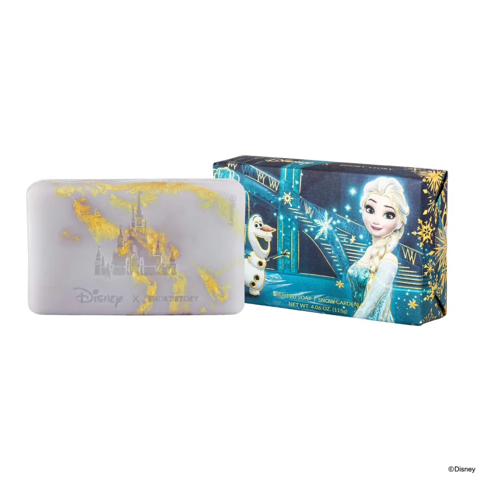 Find yourself melting in a warm bouquet of florals with a Disney x Short Story Elsa, Anna & Olaf soap. Let all your worries go with a beautiful blend of jasmine, white gardenia and a hint of rose to soothe your soul and leave you feeling elated.
