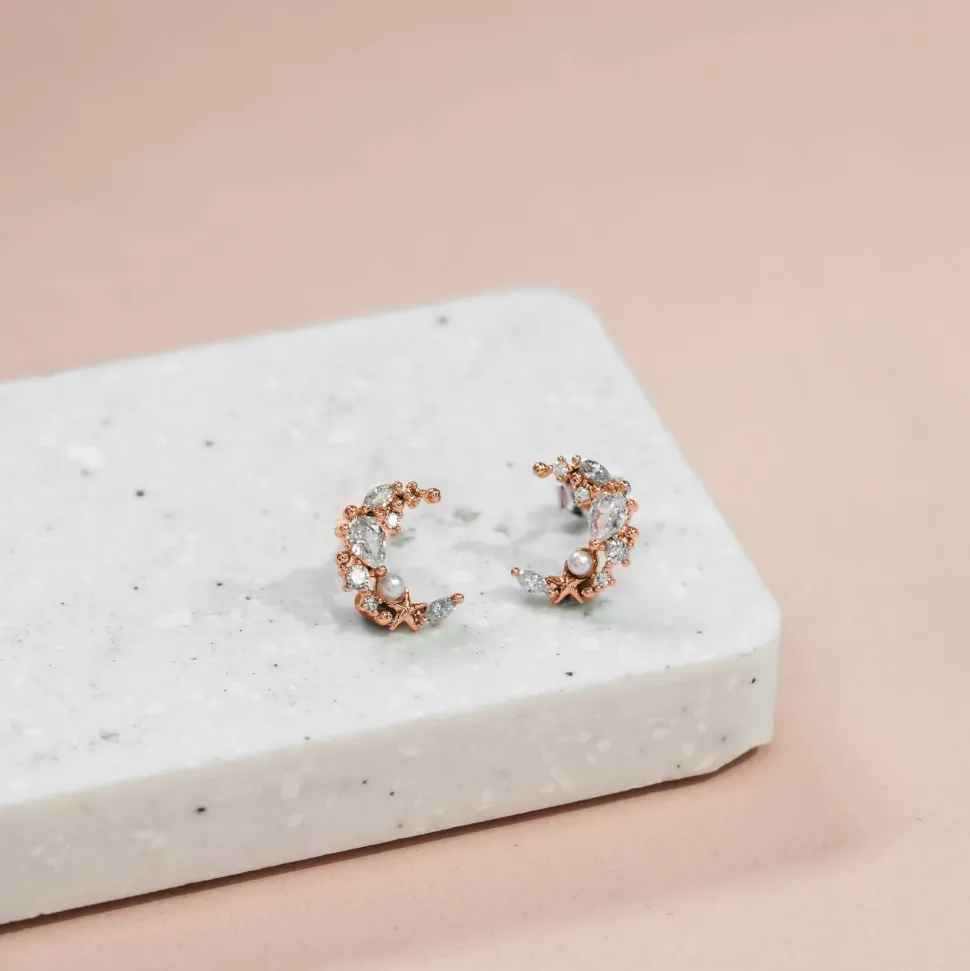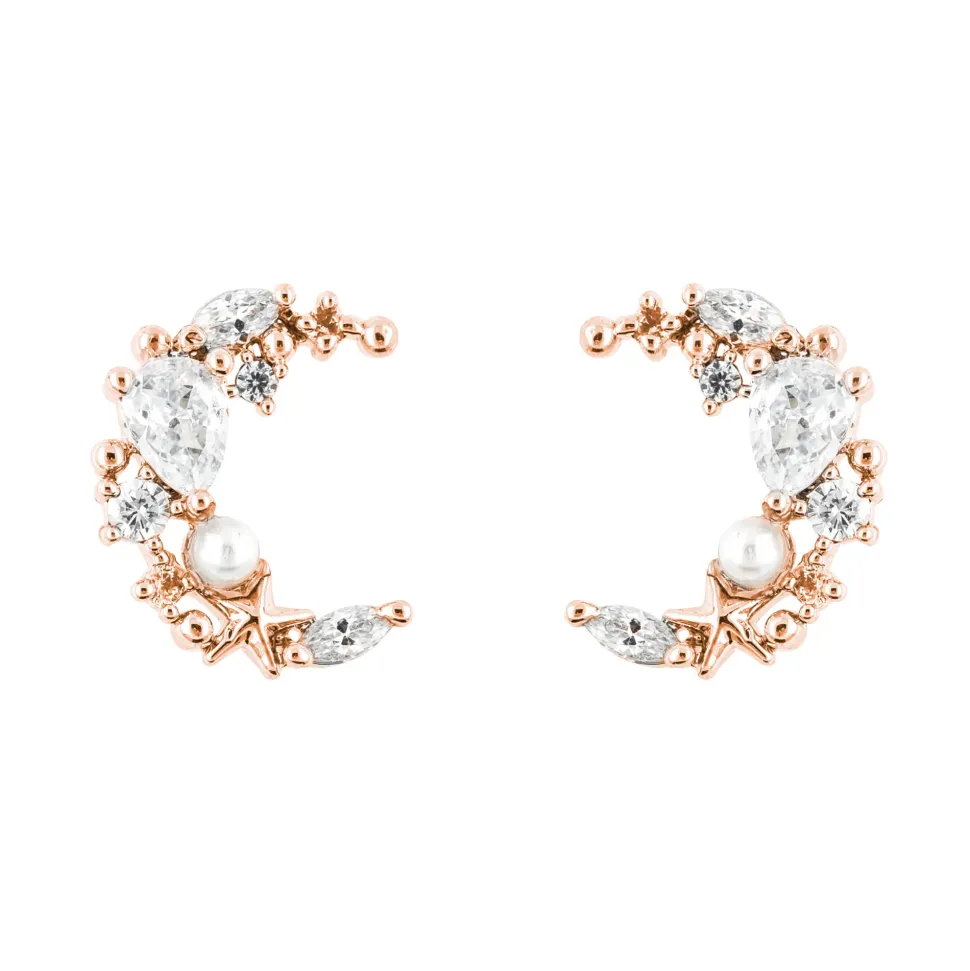Add a touch of glamour to your next night out with these stunning Diamante Moon Pearl Earrings.