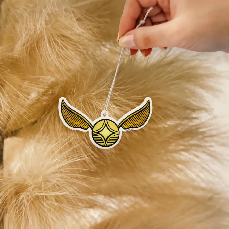 Take your daily drives to new heights with the thrilling world of Quidditch and this Golden Snitch air freshener.
