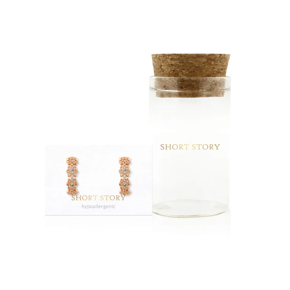 Short Story’s earrings are sent out to you in a beautiful corked glass jar, ready to be gifted to that special someone or to admire in your own collection.
