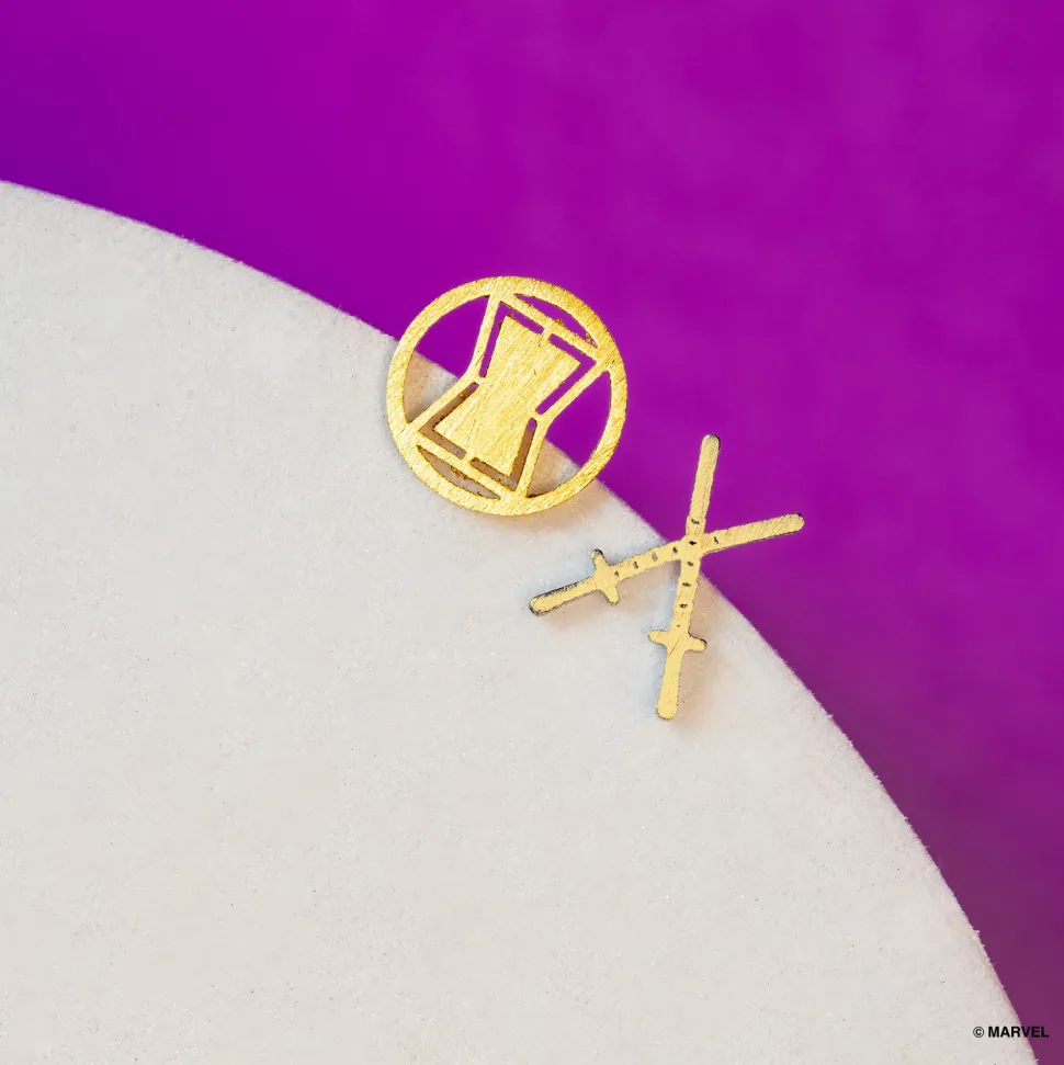 Wear a sleek and stylish tribute to the enigmatic super spy with these Black Widow & Dual Baton earrings.