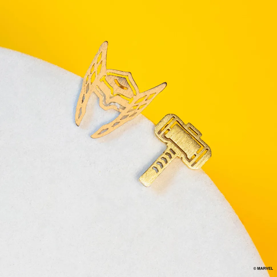 Embrace the thunderous might of Mjolnir as you elevate your style to godly heights with this pair of Thor & Mjolnir earrings.