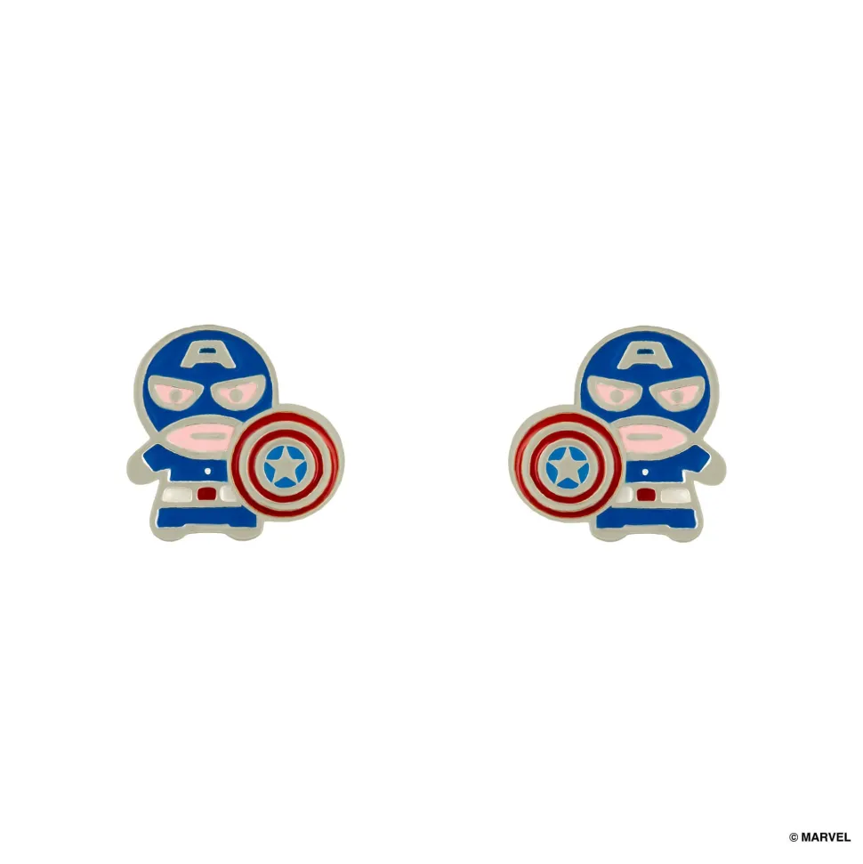 Wear a stylish salute to the Star-Spangled Avenger with this pair of Captain America epoxy earrings.
