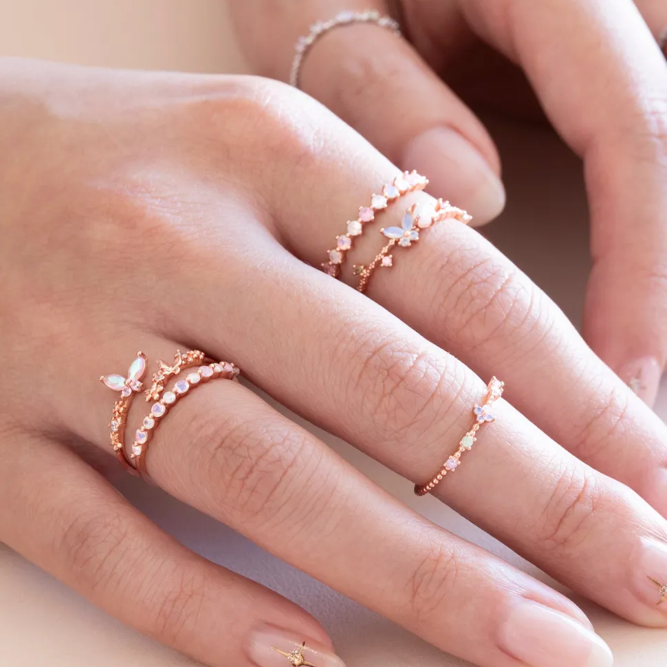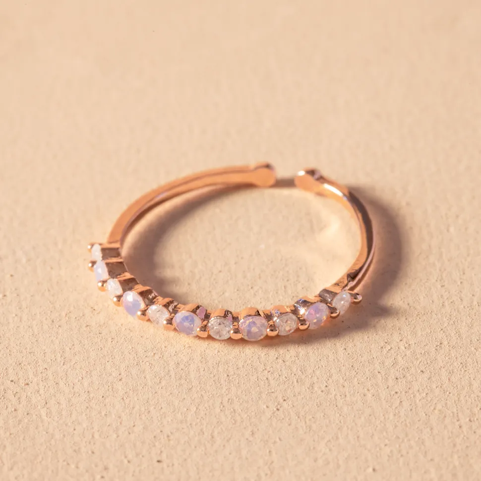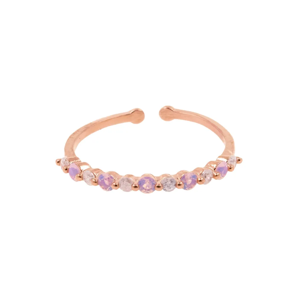 Add a subtle sparkle to your next outfit with this rose gold Brigette ring.