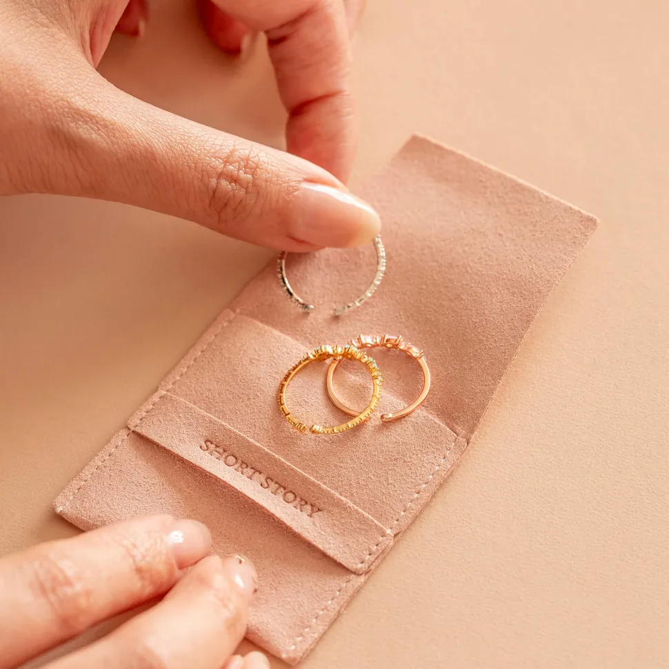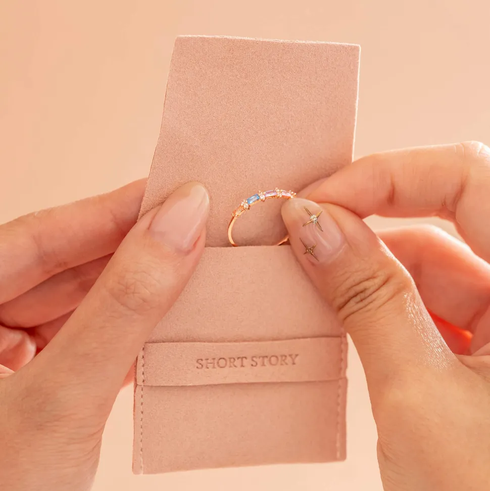Each Short Story ring comes enclosed in a specially designed suede pouch, ready to be gifted to that special someone or admired in your own collection.