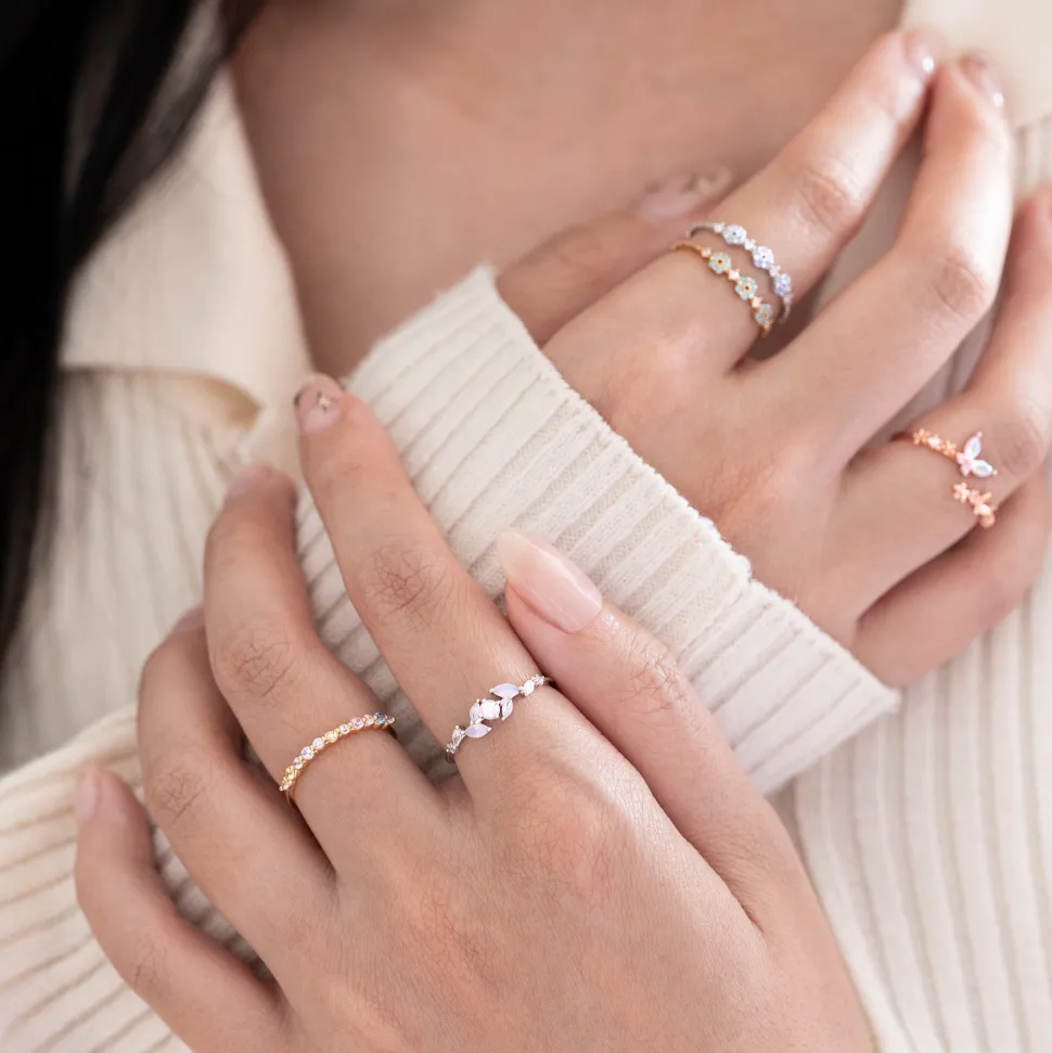 Adorned with handset diamantes, our beautiful 14K gold / sterling silver plated rings are perfect for adding a bit of sparkle to your jewellery collection. Style them on their own or layer pieces together to create your own unique outfit. You are the stylist!