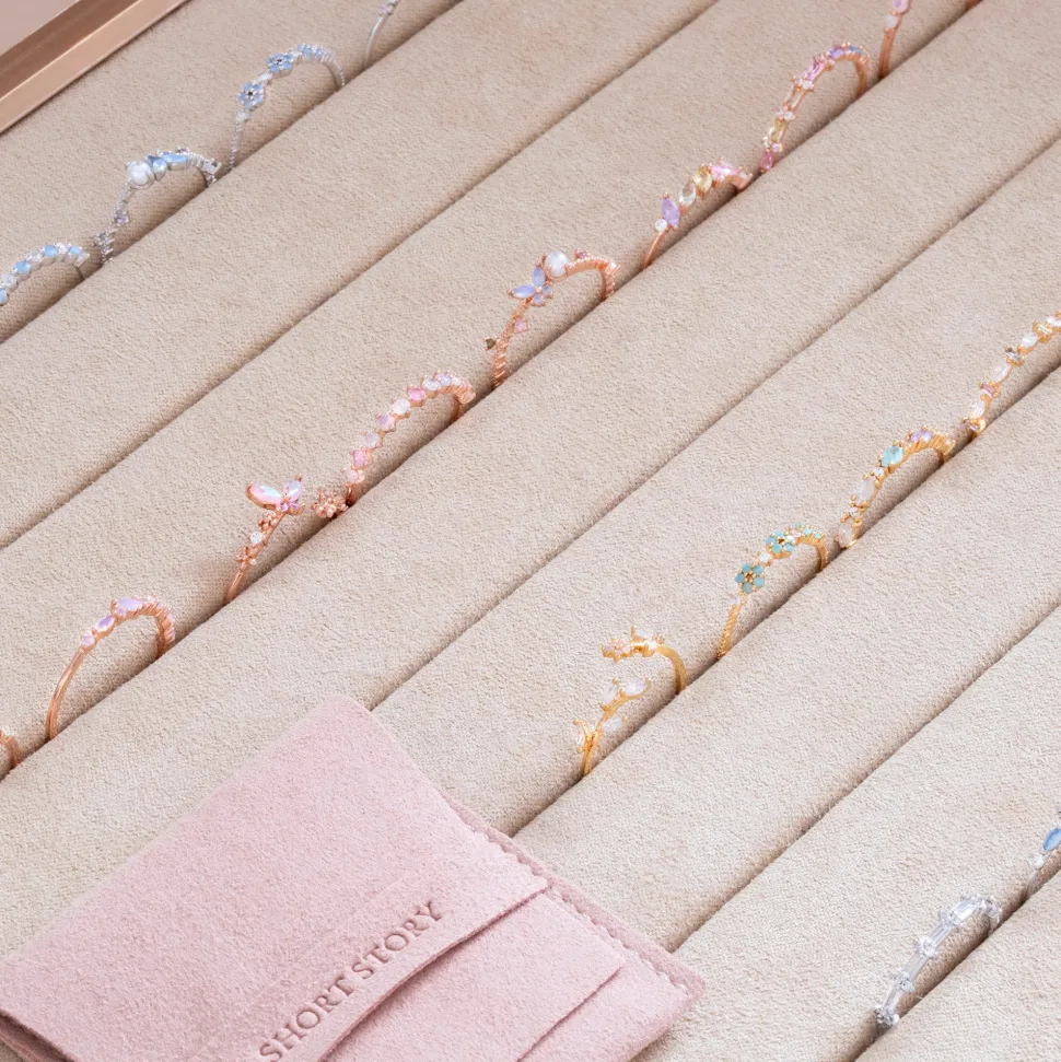 Each Short Story ring comes enclosed in a specially designed suede pouch, ready to be gifted to that special someone or admired in your own collection.