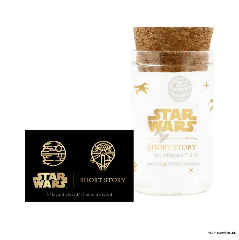 Star Wars x Short Story earrings are sent out to you in a beautiful corked glass jar, ready to be gifted to that special someone or to admire in your own collection.