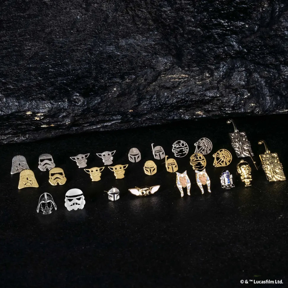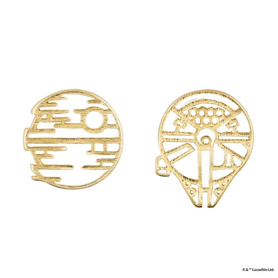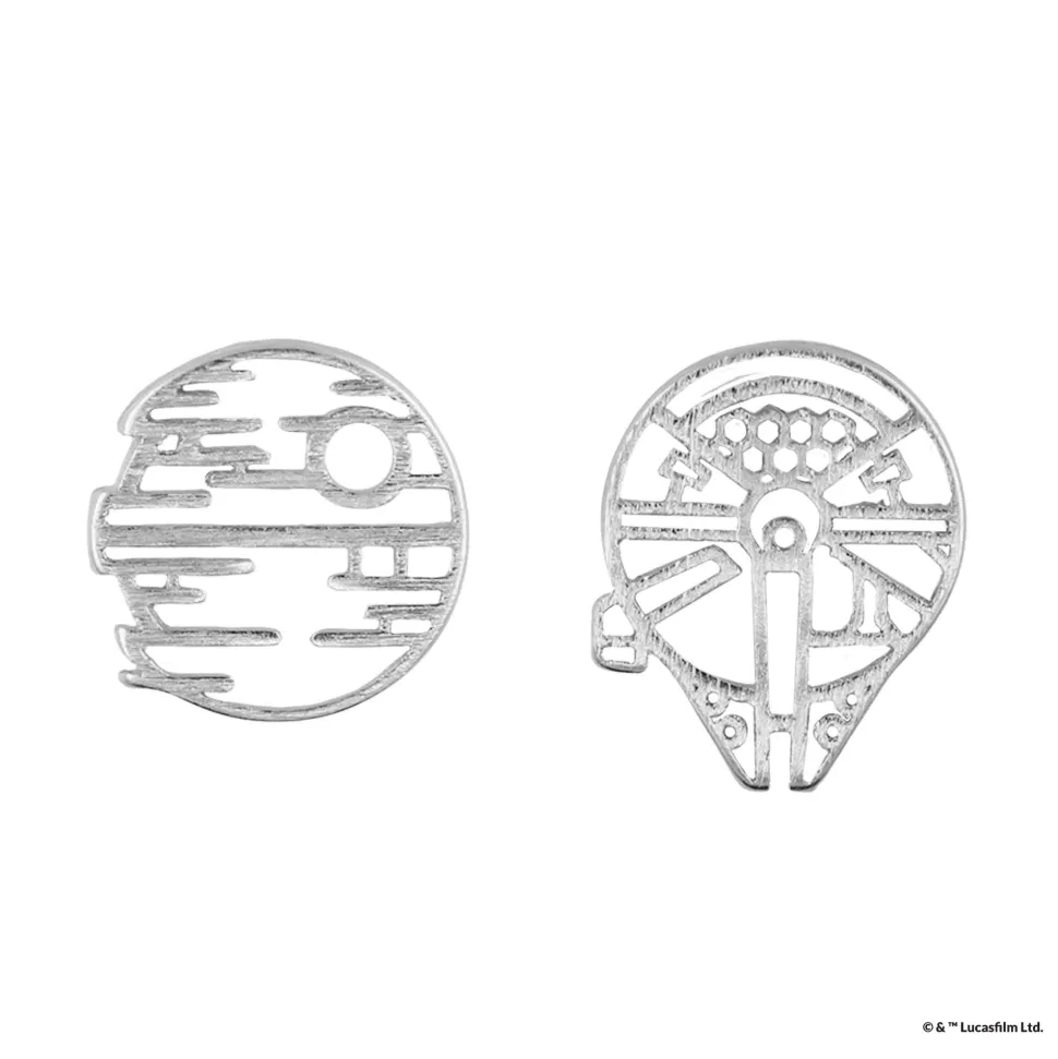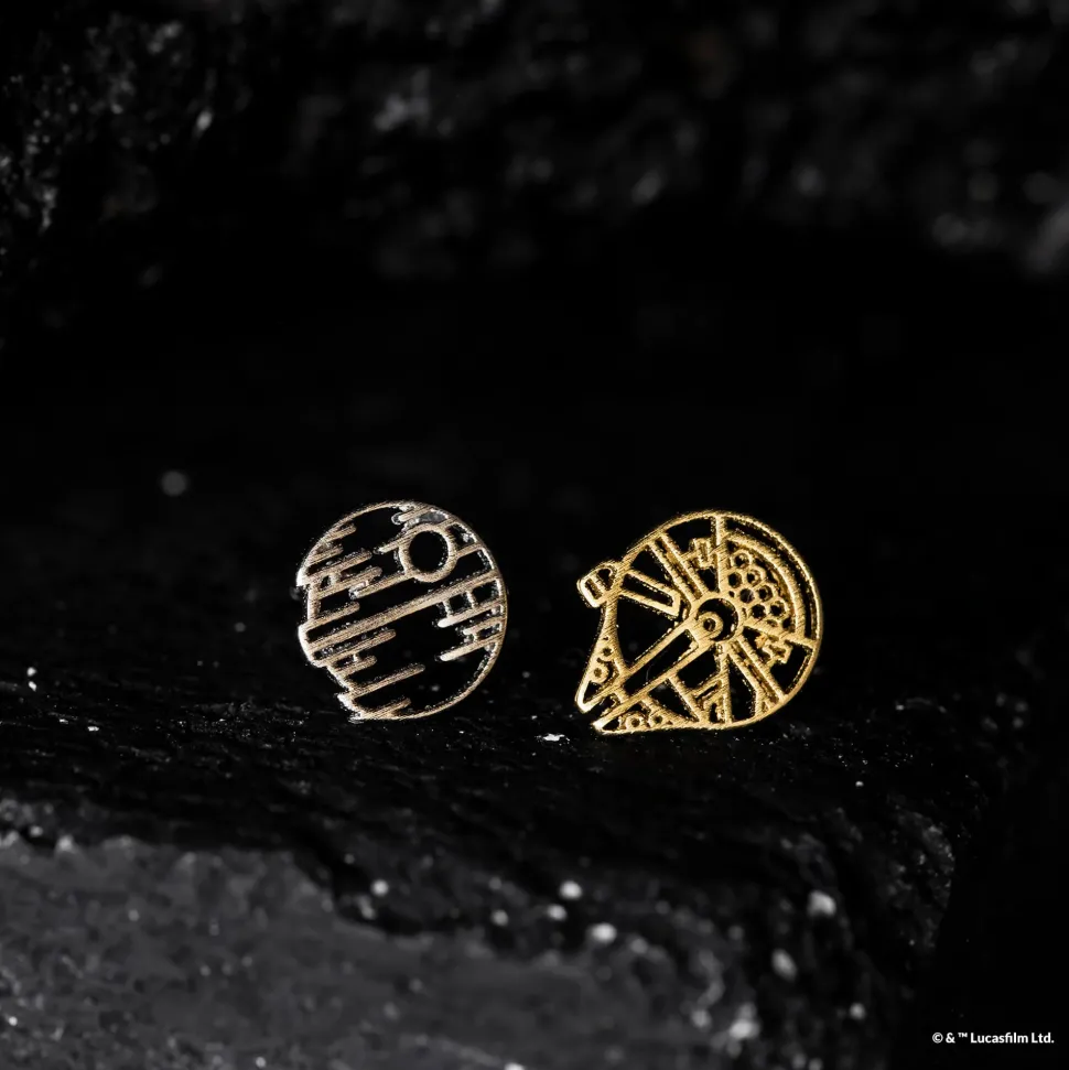 Find the balance between light and dark with this Millenium Falcon™ and Death Star™ stencil earring.