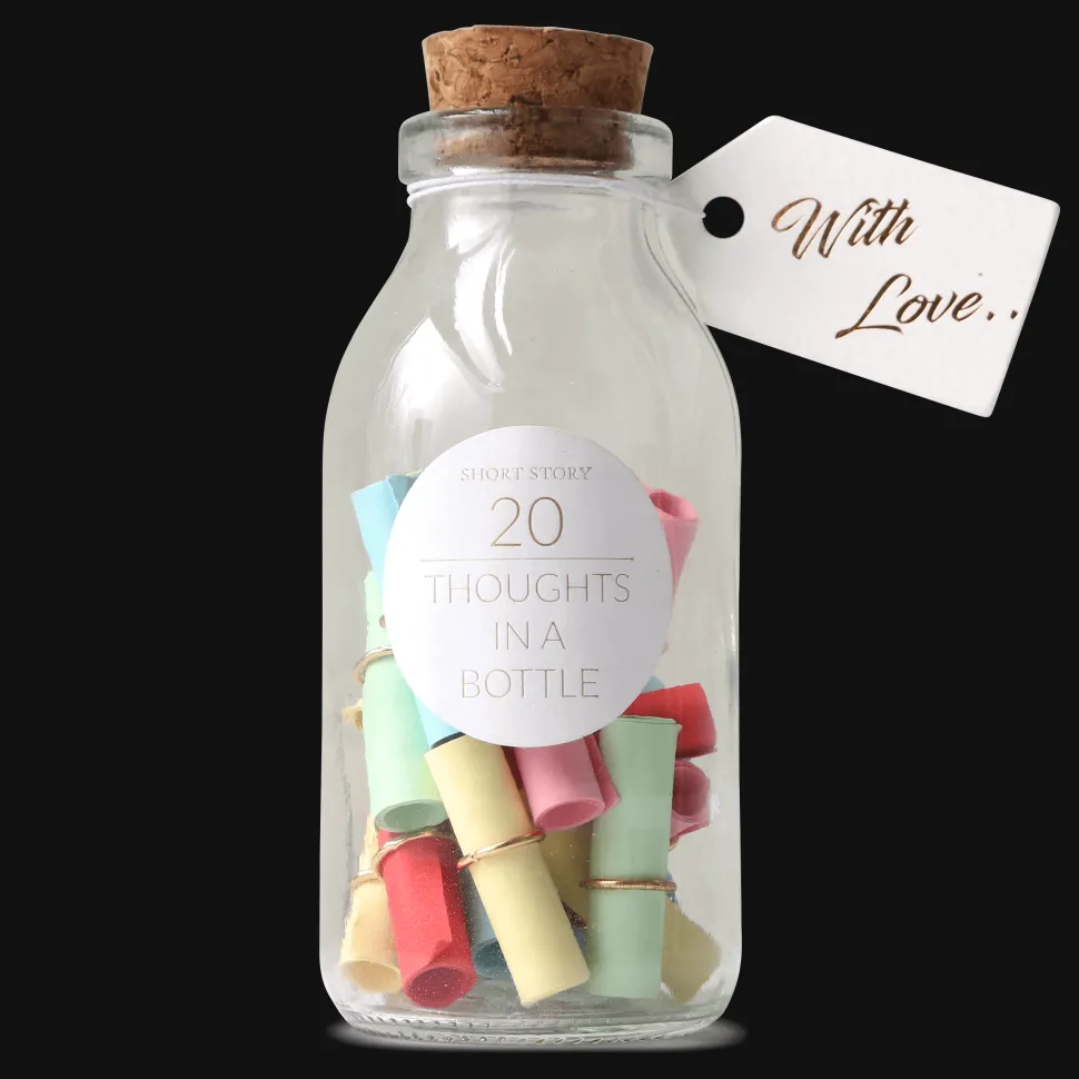 Our beautiful bottles hold 20 blank scrolls for you to share a message that will last a lifetime.
